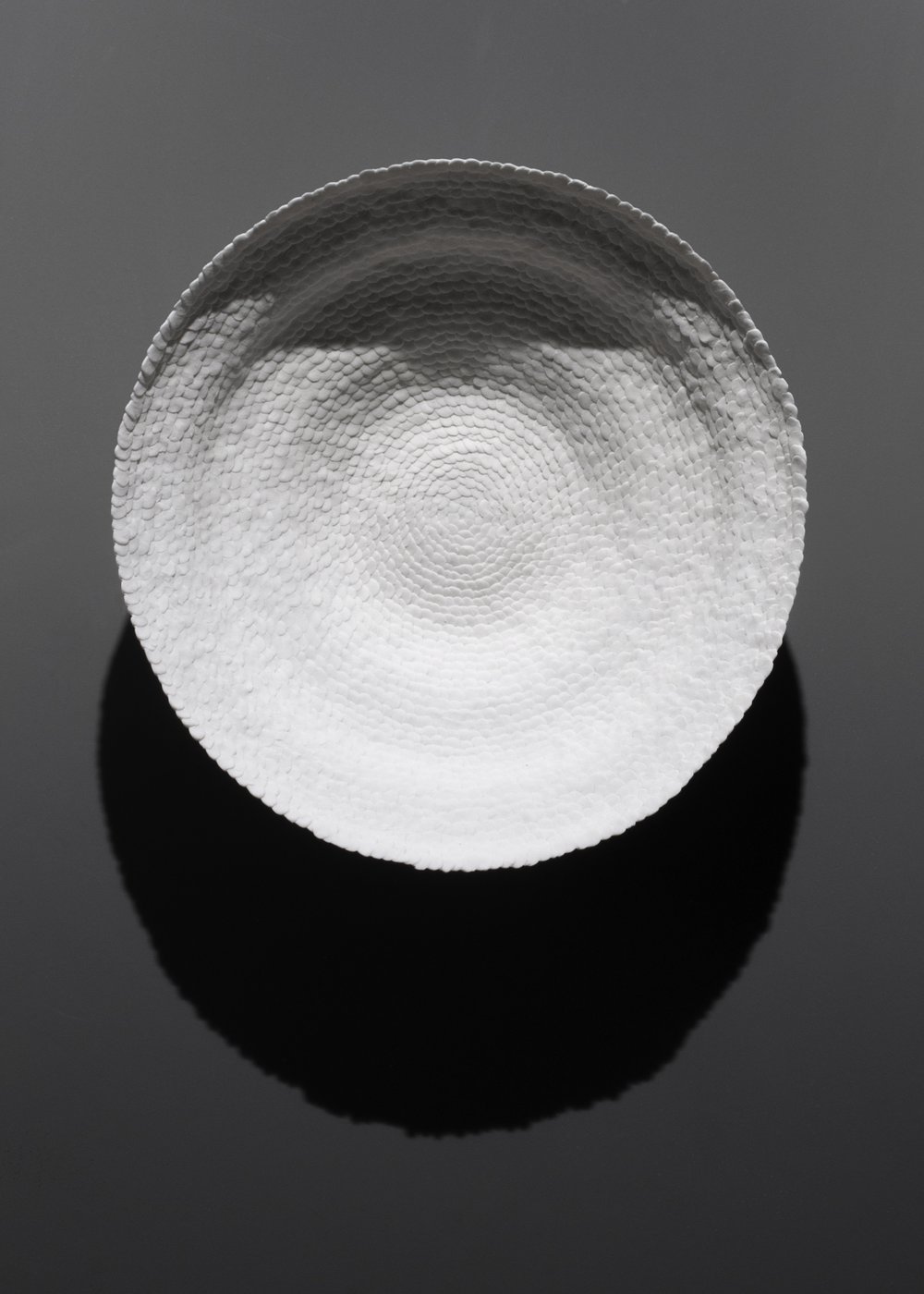 Once fired, the finished forms offer a quietly impressive record of his patient conscientious state of being, which permeates through and arguably transcends beyond the object itself.